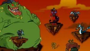 مغامرات جاكي شان : هناك في الماضي القديم وحوش قوية لم يستطع احد ان يهزمها ولكن تمكن ثمانية أشخاص من القضاء عليهم وحبسهم في صندوق والأن في الحاضر ظهر شندو ويريد الحصول على هذه الرموز حتى يحرر نفسه من سجنه ويحرر الأشرار.